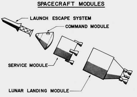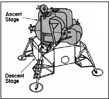 Segundo a versão oficial do Programa Apollo, o LM desceu na Lua com dois astronautas e era composto de duas partes. A parte de cima, que era uma nave (ascent stage), se separou da parte de baixo (descent stage) e levantou voo com os astronautas no final de cada missão na Lua, entrando em órbita lunar. Depois, os dois tripulantes se transferiram para o CM, que estava acoplado ao SM, e então começou a viagem de volta, enquanto o ascent stage foi descartado.