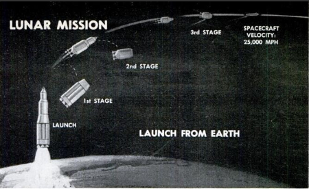 Em mar. 1962 a revista Popular Mechanics apresentou um artigo mostrando a ideia de direct ascent (que será comentado mais adiante) no Projeto Apollo. As três imagens seguintes mostram como isso estava sendo imaginado: