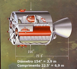 Conforme mostra a imagem anterior, na ponta do foguete estavam montados os seguintes módulos: