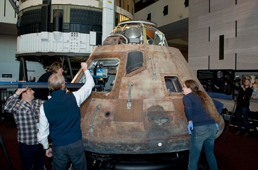 O CM foi projetado para manter com segurança os três astronautas durante toda a missão. Segundo a versão oficial, somente dois deles saíram do CM para descer à Lua, depois retornaram e permaneceram no CM durante toda a viagem de volta. Ao retornar da Lua, o CM teria feito um giro de 180° em pleno espaço próximo à Terra, como será descrito no próximo capítulo.