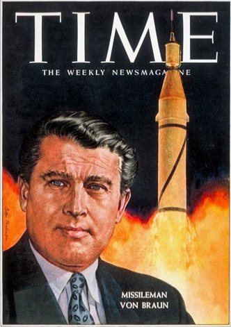 A revista Time de 17 fev. 1958 apresentou na capa o rosto de von Braun, ao lado de uma imagem de um míssil sendo lançado, apenas com o texto Missileman von Braun (Homem míssil von Braun). Ele fez jus ao título por apresentar na época algumas ideias sobre uso militar de foguetes e satélites, mas que não foram aceitas pelo governo. Abaixo temos uma das sugestões dele:
