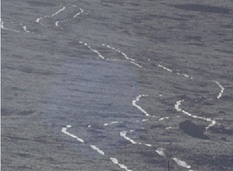 Podemos supor que aqui aparecem marcas de pneus deixadas em um local terrestre coberto com gelo. As marcas são tênues, mas sugerem que o veículo realizou algumas curvas fechadas improváveis. Essas irregularidades ficam mais visíveis ao se ampliar a foto em alta definição.