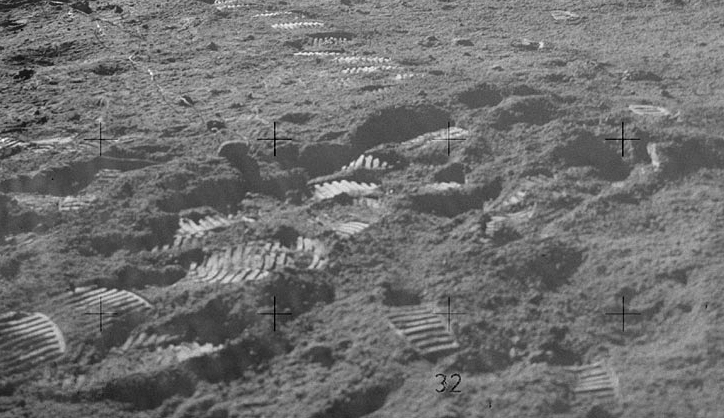 Praticamente todas as inúmeras pegadas que aparecem nas fotos e vídeos oficiais divulgadas pela NASA são denunciadoras da fraude.