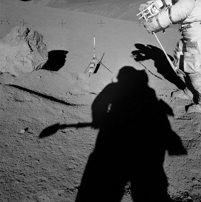 Aqui vemos sombras muito convergentes e incomuns. Nota-se a concentração do foco de luz na sombra da cabeça. Algumas explicações sobre irregularidades nas sombras são muito usadas como supostas provas de que as viagens à Lua aconteceram. Sabe-se que em diversas situações normais as sombras de objetos ou seres podem dar a impressão de serem convergentes ou divergentes, por questões de distância do observador. O que chama a atenção na foto é o exagero com que isso se apresenta e podemos admitir que isso seja proposital.